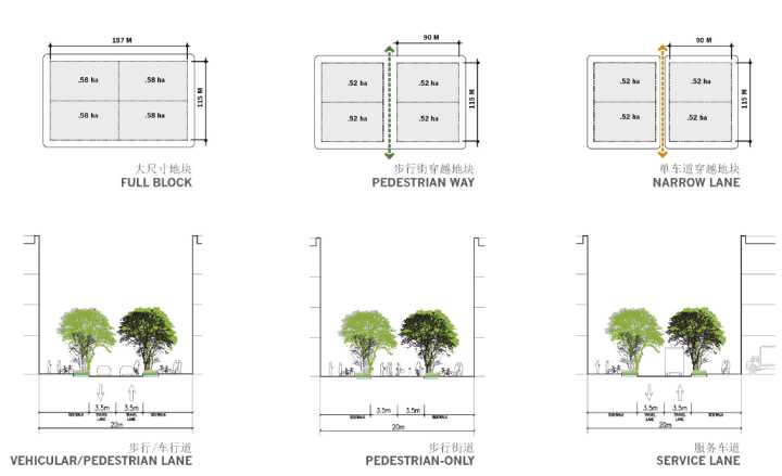 故事講的很特別,但是觀點并沒有什么新的,且不說中央前段時間提出的開放街區(qū),即便在很久很久以前,這在城市設計實踐領域便已著手實踐(下圖來自[SOM][2008]武漢王家墩商務核心區(qū)設計規(guī)劃方案)