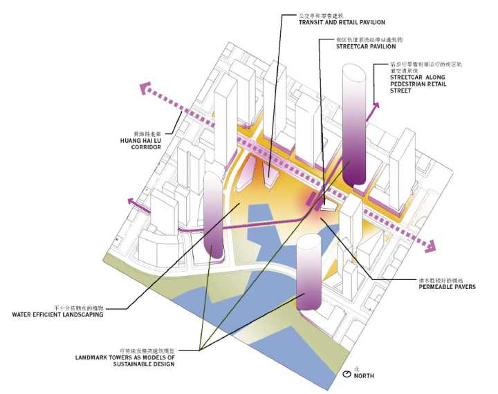 這樣的思考——實在是沒有建樹,隨手翻一個早年的som的城市設計方案,就已然做出應對,對于街道空間連續(xù)性的思考(下圖來自[SOM][2008]武漢王家墩商務核心區(qū)設計規(guī)劃方案)