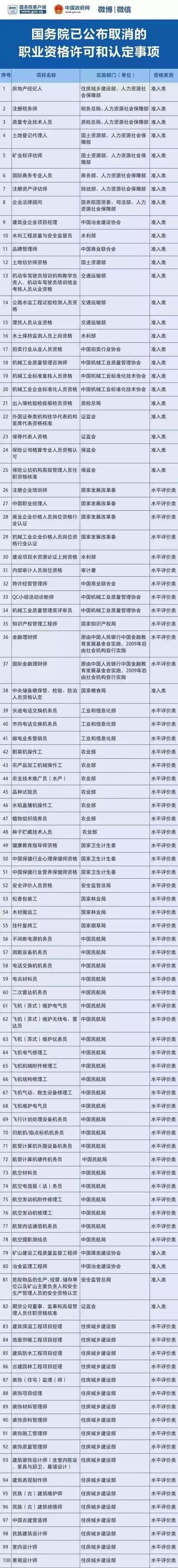 下面就是被國(guó)務(wù)院取消的資格認(rèn)定,大家看一看,以后千萬(wàn)別浪費(fèi)時(shí)間在這些證書(shū)的考取上面了: