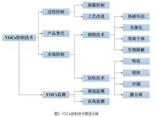 根據(jù)大氣中VOCs產(chǎn)生的原理和VOCs的理化性質(zhì),其控制技術(shù)可以分為兩大類,過(guò)程控制和末端控制。