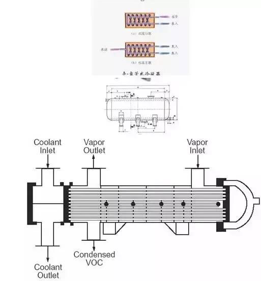 原理:冷凝將廢氣降溫至VOCs成份之露點(diǎn)以下,使之凝結(jié)為液態(tài)后加以回收之方法。
