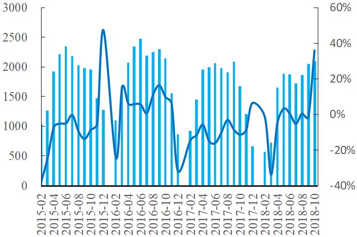2018年10月華北水泥產(chǎn)量增速大幅提升