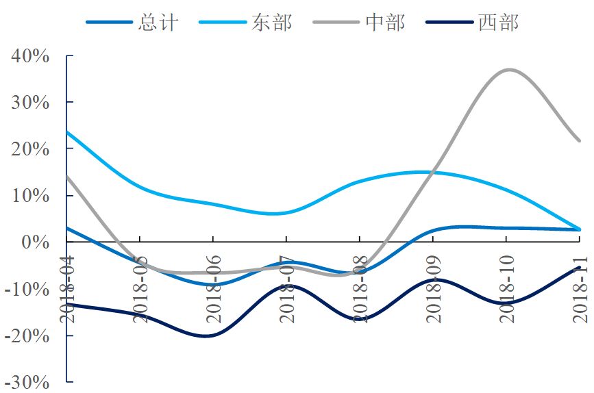 從鐵路切換到道路,道路投資在基建投資中占比較高。2018年1-10月道路固定資產(chǎn)投資共計(jì)3.59萬(wàn)億萬(wàn)億,在基建投資中占比達(dá)到31%。公路投資增速與資金面情況息息相關(guān)。2018Q2以來(lái),西部地區(qū)公路投資降幅收窄,固定資產(chǎn)投資持續(xù)下滑。