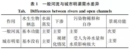 相對于自然河道,明渠水質、水量受人為控制作用明顯,與自然生態系統的交互作用較弱,基本喪失了一般河流的自然屬性和生態屬性,因此其需水量計算不再簡單適用于一般河道以生態環境機理為主的計算方法,如Tennant法、濕周法等。城市明渠的需水量主要是考慮在一定的環境目標、景觀要求下采取的人為補水措施,主要受到蒸發、下滲、污染物降解等因素影響,目前相關經驗較少。