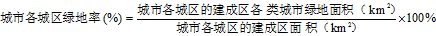 3、 建成區(qū)綠地率應(yīng)按下式計(jì)算: