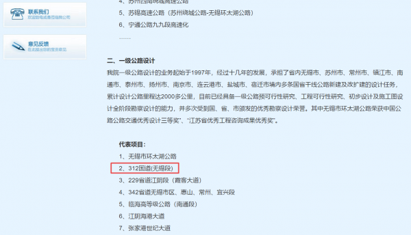 經(jīng)濟觀察網(wǎng)記者注意到,另外一家上市公司中設股份(002883.SZ)的官網(wǎng)信息顯示,在該公司的一級公路設計代表項目中,312國道(無錫段)赫然在列。
