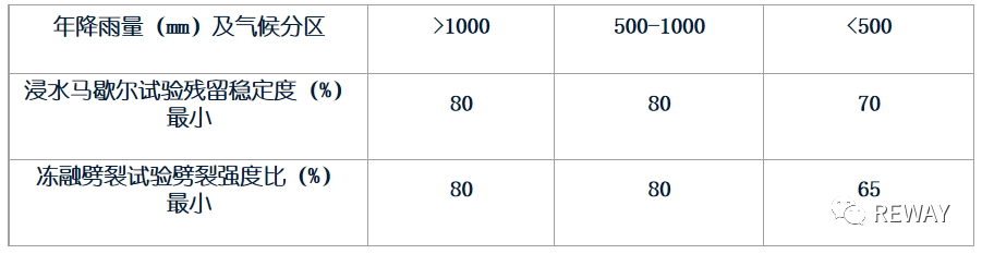 注:對于有條件的地方,為了減少凍融劈裂試驗因空隙變異而造成的試驗結果的偏差。可采用控制試件成型空隙率的AASHTOT283方法,指標同凍融劈裂試驗要求。