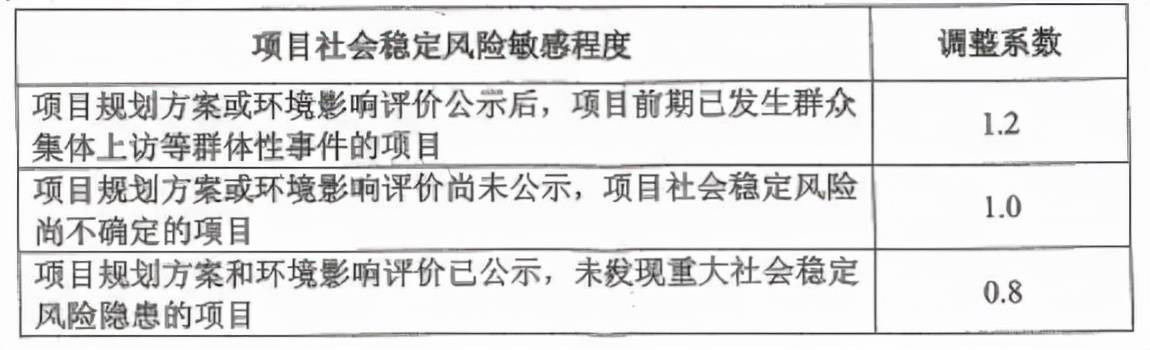 表7 社會(huì)穩(wěn)定風(fēng)險(xiǎn)敏感程度調(diào)整系數(shù)