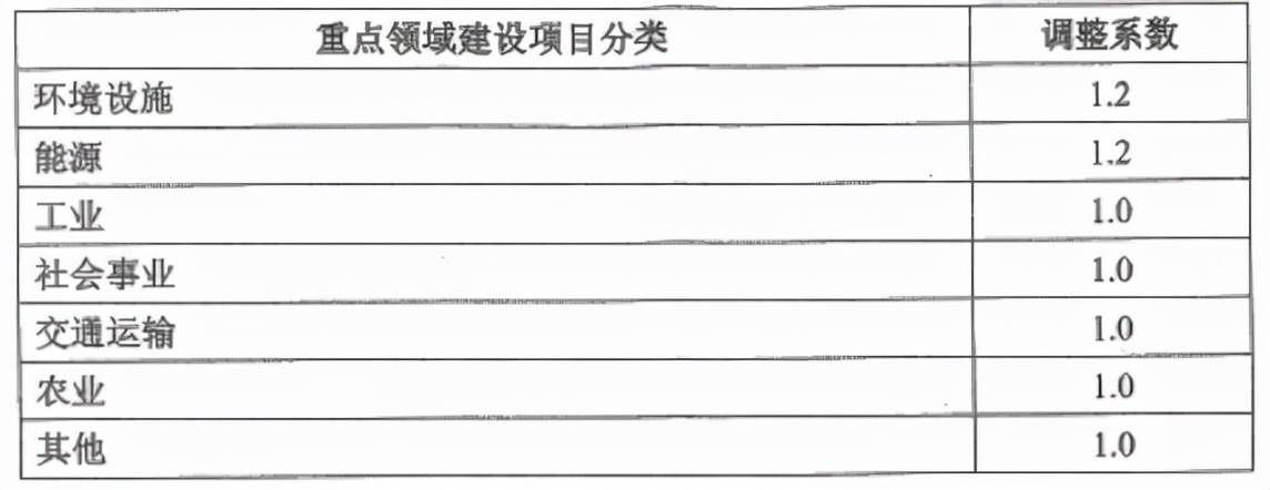 表2 按建設(shè)項(xiàng)目估算投資額分檔收費(fèi)的調(diào)整系數(shù)