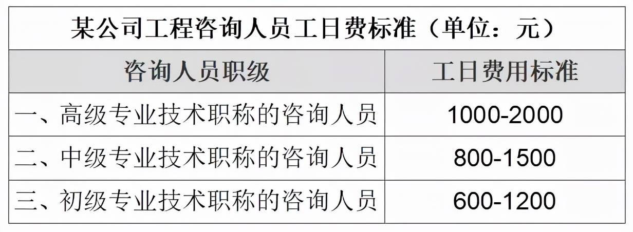 表3 工程咨詢?nèi)藛T工日費(fèi)用標(biāo)準(zhǔn)(單位:元)