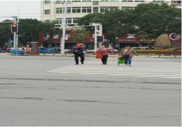 ?。ㄈC動車與非機動車、行人混行,爭搶路權沖突嚴重,存在交通安全隱患,如圖-3所示。