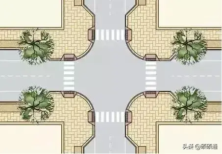 較小轉(zhuǎn)彎半徑的交叉口長這個樣子: